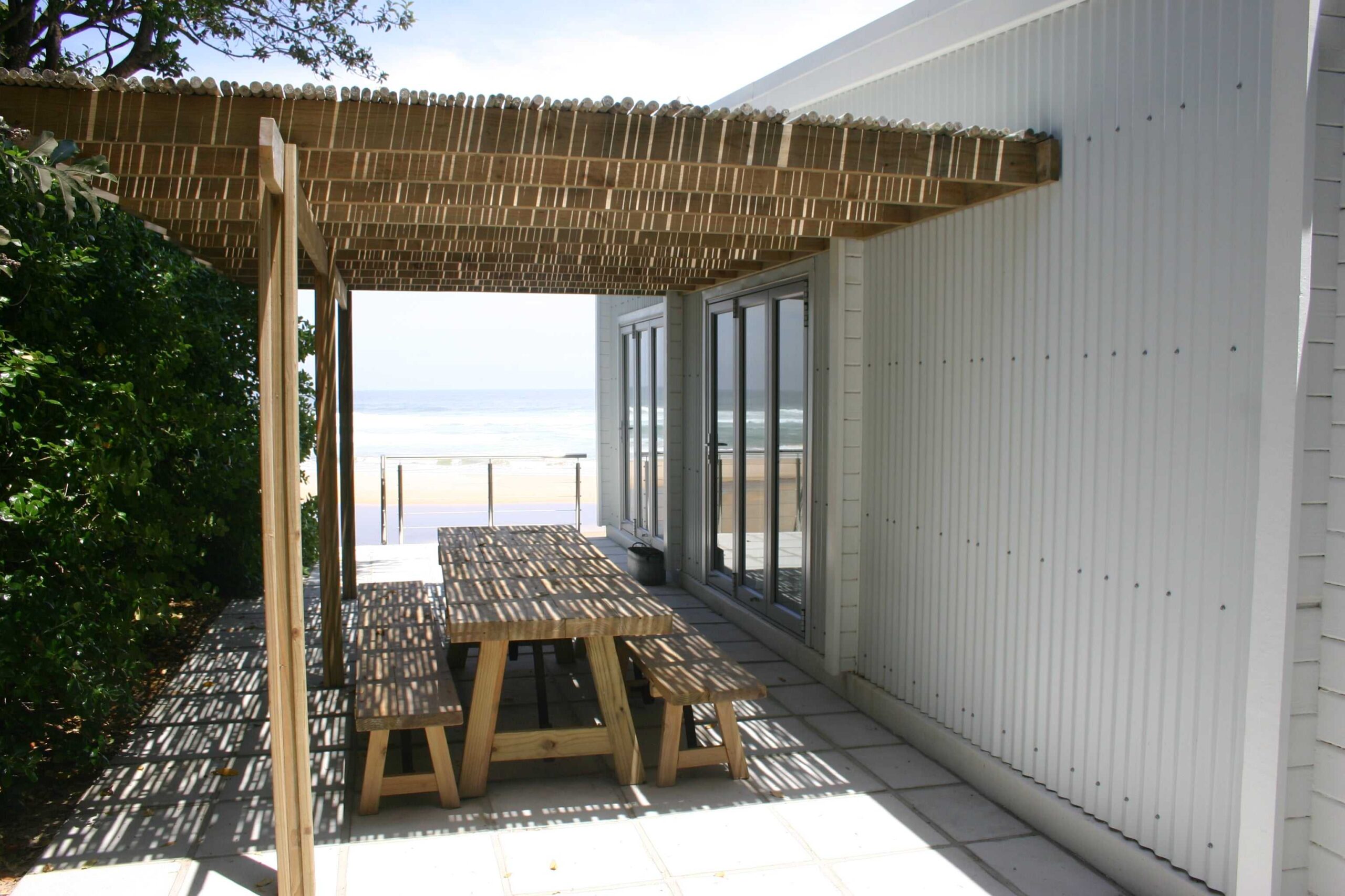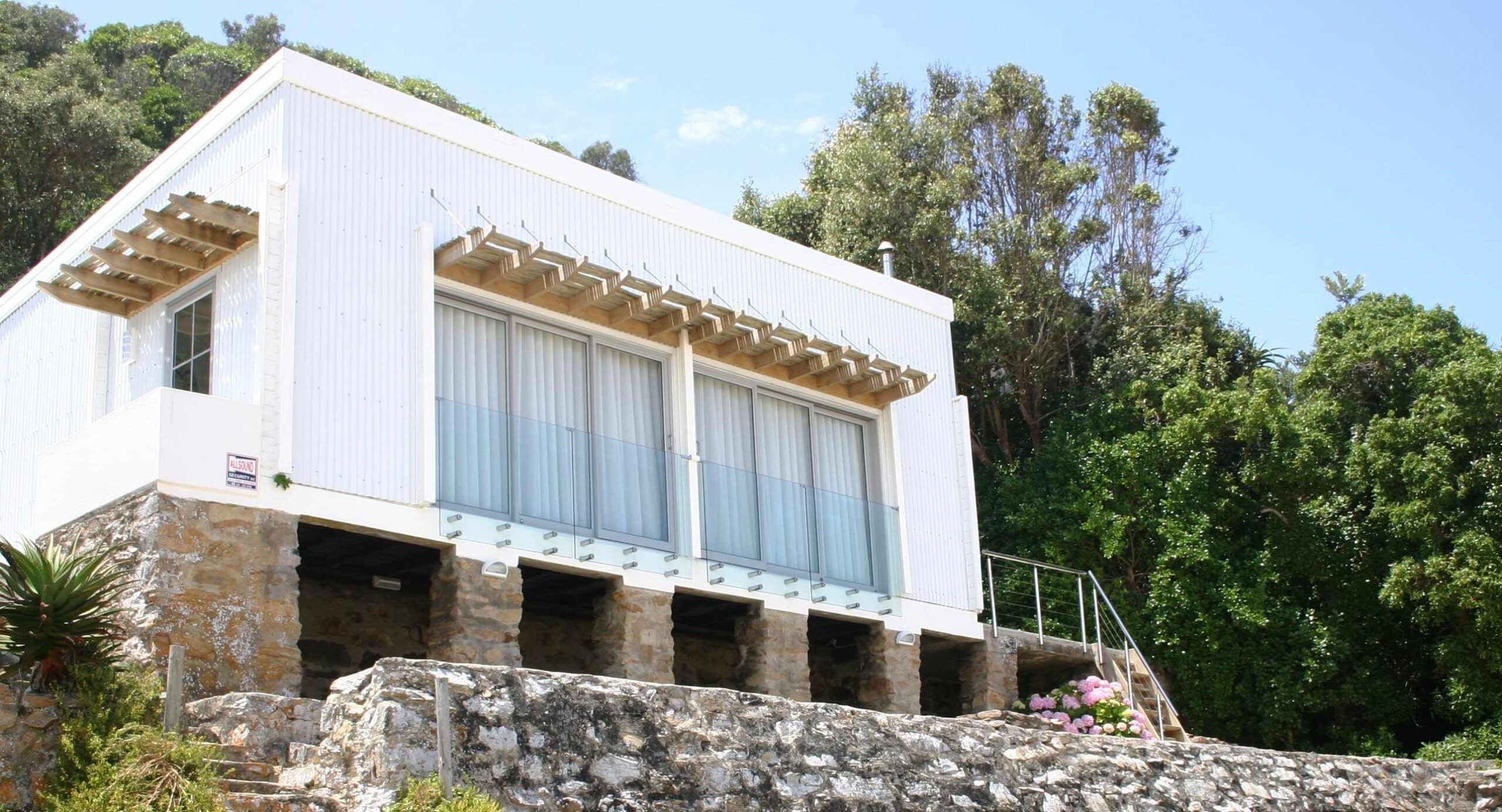 The existing structure was an old log home build on rock piers and fragile timber joists. The construction brief was to modernise the building without changing the structure. To achieve this, Aluzinc cladding was installed over the timber walls, new interior finishes were added, and the decking, paving and walls were upgraded. The sea wall was also rebuilt after wave damage using Sholin retaining blocks clad in the original rock.